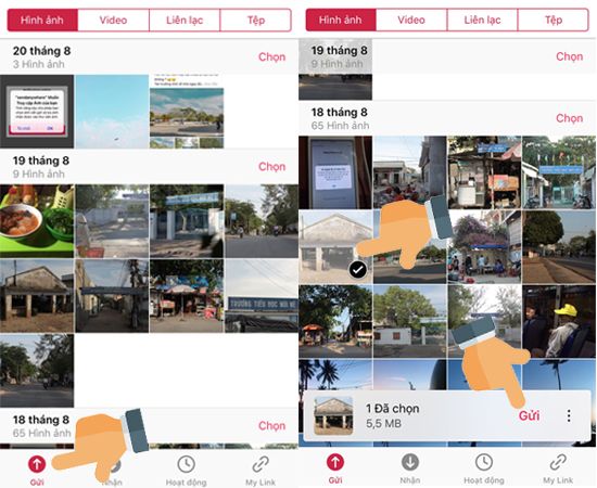 + On iPhone/iPad, click Send -> select the data to send -> Send.