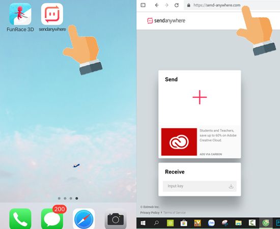 Step 2: Launch the app on iPhone/iPad and visit send-anywhere.com on laptop.