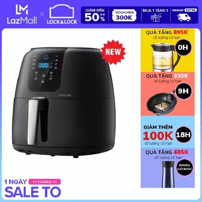 For ladies, frying without oil or smoke with an air fryer is a dream come true. On this 11.11 Big Sale Day, the blockbuster Lock&Lock Super Jumbo 7.2L will be SHOCKINGLY DISCOUNTED UP TO 55% from 5,060,000 VND to ONLY 2,289,000 VND. Don't miss out on this hot home appliance deal starting from midnight tonight on 11.11.