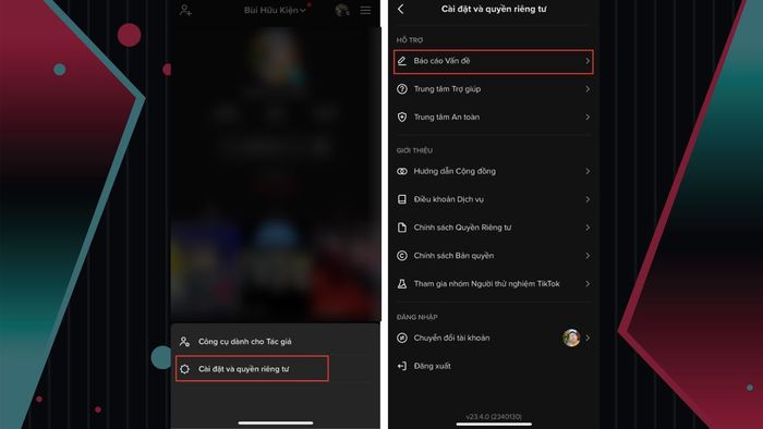 Step 2: Then select 'Settings and Privacy'. Afterward, click on 'Report a Problem' to report the violation that needs to be removed and carry out the TikTok community standards violation resolution process.