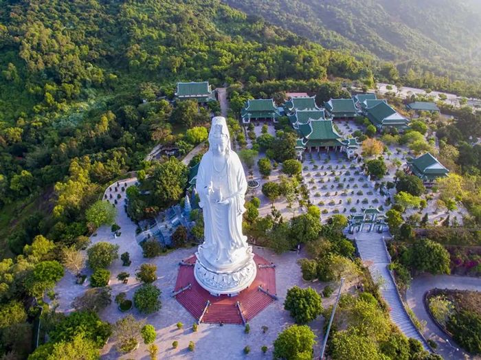 Linh Ung Pagoda (12km): This is undoubtedly an essential spot on the Da Nang Travel Map. In Da Nang, there are three pagodas named Linh Ung. The one located in Son Tra, right by the beautiful coastline, is often visited by many tourists to offer incense and seek good fortune.