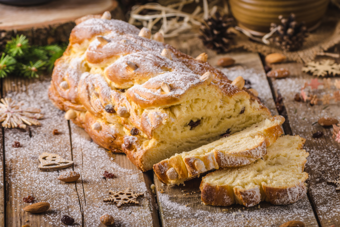 Vanocka is a traditional sweet bread from the Czech Republic baked during Christmas. It is made from kneaded dough with yeast, braided into a long loaf shape. Christmas bread is shaped with the idea of a small Jesus figure wrapped in a blanket. Each vanocka loaf is made from nine strands of dough, braided into three separate braids. The bottom four strands represent the four main elements of earth: fire, water, earth, and air. The three strands in the middle symbolize three characteristics of humans: intellect, will, and emotion. The top two strands represent two virtues: love and knowledge. This dish symbolizes a new life and vitality.
