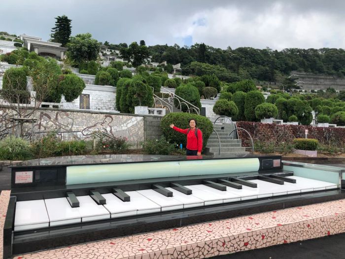 The initial impression of Dang Le Quan's 'new residence' since 1995 is a grand and serene cemetery park. A Feng Shui master once remarked that this place is 'unfavorable', attracting many 'spirits' due to its unfavorable Feng Shui (you can search this information on Google). Dang Le Quan, born in the Year of the Dragon, should have had her grave facing the Northwest instead of the current Southwest. Before arriving, Lily found these rumors a bit unsettling; luckily, when she visited Teresa Teng Memorial Park, there were many other tour groups, so Lily felt relatively normal. During the day, there were plenty of cars passing through this route, so overall, there was nothing to fear.