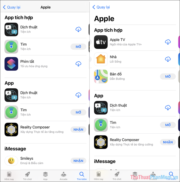 Step 2: When you tap on Apple, the App Store will display a complete list of apps developed and integrated by Apple on the phone.