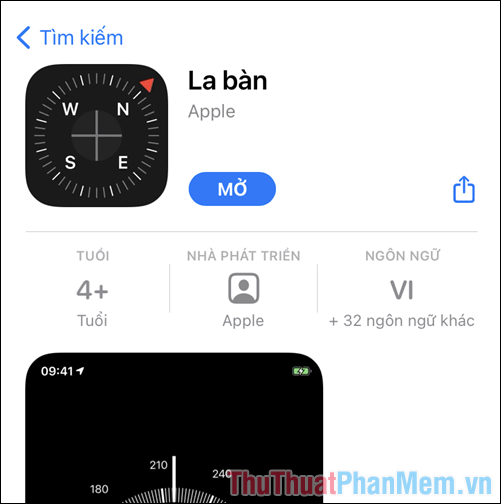 Step 1: Enter a default Apple app and search for it on the App Store. If you're unsure which app to choose, select Compass to follow along with the article.