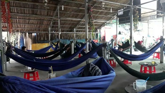 Tường Giang is a spacious Vũng Tàu hammock cafe. With over 20 hammocks, it can accommodate about 40 guests. Despite not having a seaside view, the airy and spacious atmosphere still attracts a steady stream of customers. The cafe's strong Wi-Fi connection is also a plus point. Coupled with soothing music like the sound of waves, it creates a comfortable feeling for travelers.