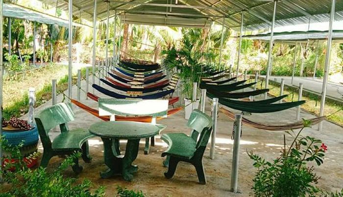 The cool garden space blends harmoniously with nature. Like many other Vũng Tàu hammock cafes, it's adorned with beautiful bonsai trees. The cafe offers a variety of drinks such as coffee, smoothies, and soda at very affordable prices.