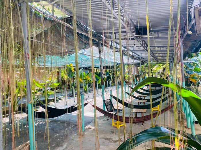 The cafe features a garden house design with various bonsai trees and orchids, creating a cool atmosphere for guests to relax and enjoy. This Vũng Tàu hammock cafe also has several leafy roof pavilions to provide a cool and airy ambiance. Additionally, the cafe plays soft, soothing music, making the space very romantic. Visitors here also feel an uncommon comfort that is hard to find elsewhere.