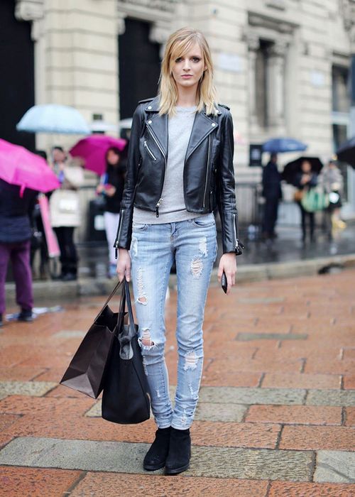 This outfit pairing will make you look extremely stylish and dynamic. Just get yourself a well-fitted leather jacket. Additionally, consider layering with a T-shirt or a lightweight sweater underneath. Avoid wearing bulky and heavy tops.