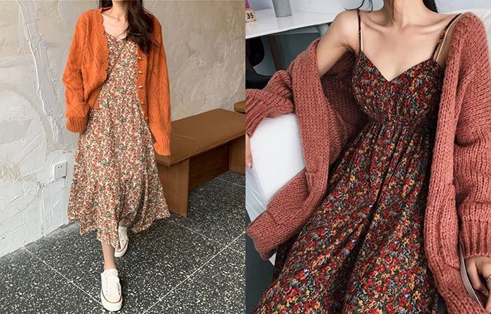During the winter season, you can still wear cute strappy dresses and floral patterns without feeling cold when paired with a cardigan. Ensure the color of your cardigan harmonizes with your floral dress.