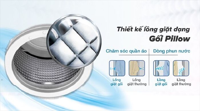 – Inverter technology for energy saving, ensuring smooth operation and prolonging lifespan – Pillow drum: Enhances washing efficiency and protects clothes – ABT door seal with antibacterial properties, prevents mold growth