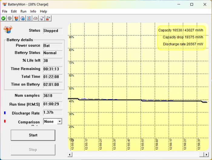 ASUS Vivobook 14 X1404VA is a slim, lightweight product with high portability, so I am highly interested in the battery life of the device.To address the above question, I utilized the BatteryMon software and divided the usage into 2 different scenarios. The results I obtained are as follows:
