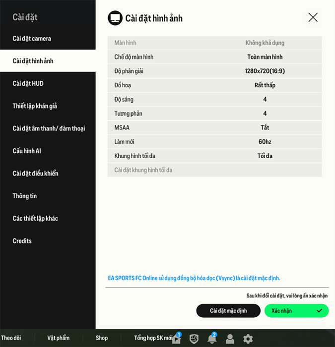 The graphic settings of the FC Online game that I adjusted on ASUS Vivobook 14 X1404VA.In the first gaming experience with FC Online, ASUS Vivobook 14 X1404VA performed well in maintaining frame rates at around 60 FPS. However, in some situations such as slow-motion shots, goal kicks, or at the beginning of the match, FPS may drop and sometimes only remain around 30 FPS. The graphics in the game are reproduced at a decent level by this laptop, with character movements and sufficient detail for a basic entertainment experience, without demanding high graphics requirements.
