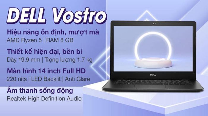 Despite its affordable price tag of just 15 million dong, the Dell Vostro 3405 Laptop comes equipped with an AMD Ryzen 5 3500U chip featuring 4 cores and 8 threads, reaching processing speeds of up to 3.7GHz.