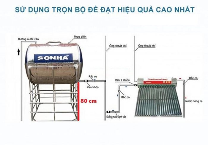 Of course, if gloomy weather persists for a whole week, you won't have hot water for use. In such cases, you need to install additional accessories to heat water using electricity to meet the family's usage needs without having to purchase another electric water heater.