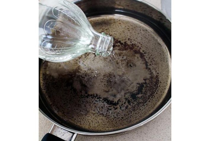 With table salt, add a moderate amount into the pot, then pour in a little vinegar, stir well, and soak for about 15 minutes. All rust particles and burnt food residue will float to the surface, and any lingering odors from old food will disappear. Dispose of the salt and vinegar solution, then wash with regular dish soap.