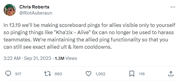 To counteract this, Riot has recently made direct adjustments to the game. Starting from version 13.19, players will no longer be able to directly ping teammates' nicknames. Specifically, cases like '(player's name) - Still Alive' will only be visible to the pinger, with the pinged player remaining unaware. These adjustments are part of Riot's efforts to improve the gaming environment for the LMHT community - an endeavor the publisher has been grappling with for many years, ever since LMHT began expanding into a large, global community.