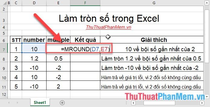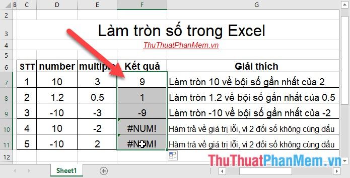 + The MROUND function rounds away from zero if the remainder after dividing number by multiple is greater than or equal to half the value of multiple