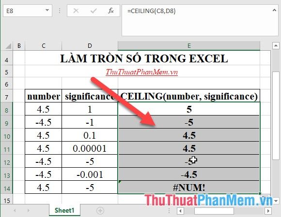 - Rounded-up values are adjusted away from zero regardless of the sign of the number. If the number is an exact multiple of the significance, it is not rounded.