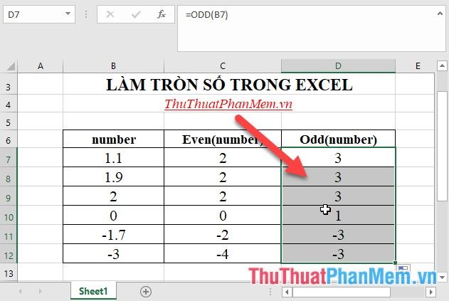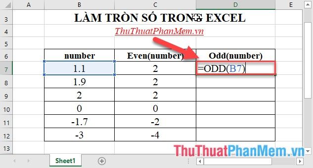 Similarly, in the cell where you want to calculate the rounded value using the Odd() function, enter the formula: =ODD(B7)