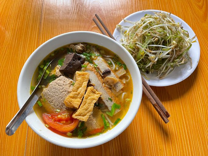 One of the famous crab noodle soup places in Con Dao is Mrs. Hai Khiem's, although it is only a small eatery, the quality of the dishes has made a name for this place. A regular bowl of crab noodle soup typically includes: crab broth, fish cake, blanched bean sprouts, blood pudding,... The taste of the crab noodle soup is rich and harmonious, everything blends together to create a trademark crab noodle soup that is well known in Con Dao.