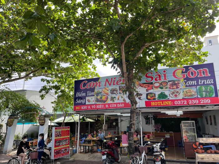 The first spot to mention among the famed Côn Đảo eateries is the Sài Gòn Côn Đảo Rice Bowl. The restaurant boasts a clean, spacious, and airy environment, able to serve not only individuals but also large groups. The establishment offers food all day long, with a breakfast menu from 7 AM featuring broken rice with grilled ribs, Côn Đảo fish cake noodle soup, and squid noodle soup—all delicious and satisfying. From 9:30 AM to 9 PM, the restaurant serves a variety of rice bowl dishes: stewed red snapper, lucky shrimp with steamed pig ear, sour soup with fish paste, and rau đay crab soup. All dishes are praised by diners as fresh, flavorful, possibly prepared by the restaurant's two head chefs, each having previously served as head chefs at 5-star restaurants and boasting a mastery of cuisine from all three regions of Vietnam, catering to all tastes.