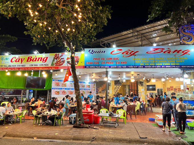 Bang Tree Restaurant is also an ideal stop for seafood enthusiasts. This place has a spacious, cool space, suitable for family gatherings and friends. The food here is quite diverse and seasoned just right, making everyone remember the taste of the food here.