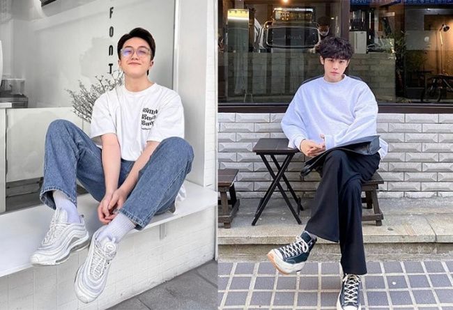 Posing for photos at the cafe for men, super cool and super stylish