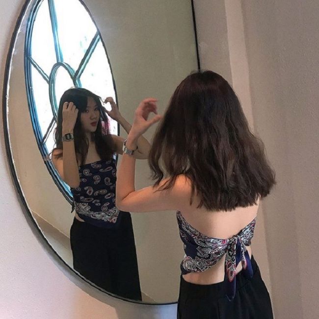How to pose beautifully and stylishly in front of the mirror (Source: Internet)