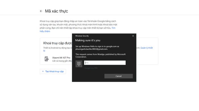 Select 'Continue'A verification method will appear for you to use as a login method. Currently, on Windows, Google will select Windows Hello as the verification method. Now, simply enter your PIN or other biometric methods within Windows Hello to use.