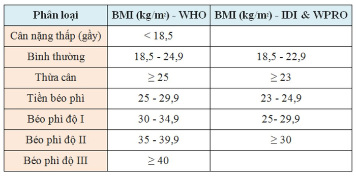 How to Calculate BMI (Source: Internet)To determine which category you fall into, refer to the statistical classification table of obesity levels based on BMI data provided by the World Health Organization (WHO) for Europeans and data from the International Diabetes Federation & Western Pacific Region (IDI & WPRO) for Asians.
