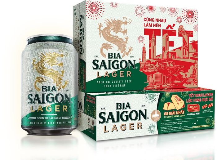 Moreover, with the theme '63 is 1 together creating Tet' welcoming Tet 2023, Sài Gòn beer has introduced a new Tet beer collection consisting of a set of 64 Saigon Lager cans, with the 64th can designed as 'VN' - abbreviation for Vietnam, in 1 beer crate.