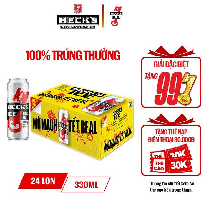 Beck’s Ice beer currently has a promotion running from November 1, 2022, to March 31, 2023. Each crate of Beck’s Ice Tet 2023 version contains a scratch card with a prize code printed on it. You have the chance to win special prizes including a Beck’s Ice gold key worth 1.5 taels of 18K gold and tens of thousands of mobile top-up cards worth 30,000 VND each when participating in the program.