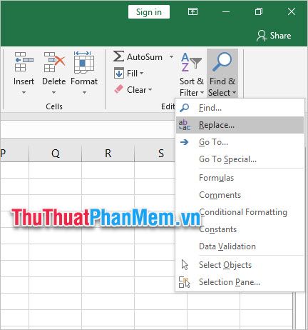 In the Home ribbon, under the Editting section at the far right corner, select Find & Select. Finally, choose the second line Replace.