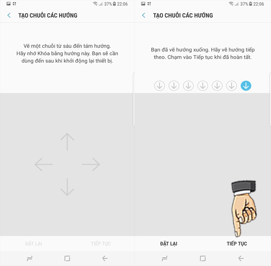 Step 4: Create a lock pattern by swiping up-down-left-right.