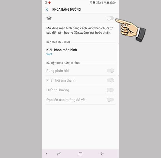 In addition to fingerprint security and pattern lock, Samsung also integrates the top-direction lock feature on some phone models.