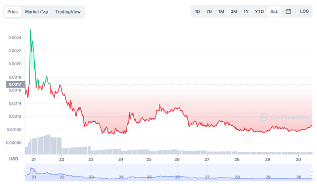According to the latest update from Coinmarketcap on November 30th, the AntEx (ANTEX) token is currently trading at 0.001061 USD. Thus, from its highest point set on November 21st (0.002529 USD), the AntEx token has lost 58% of its value.