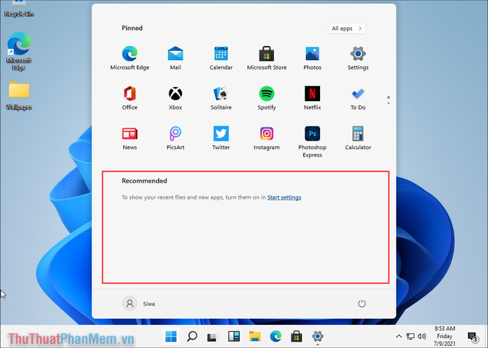 Step 1: Open the Start Menu and notice the Recommended section with various suggested content on Windows. This will cause many issues with your workspace interface.