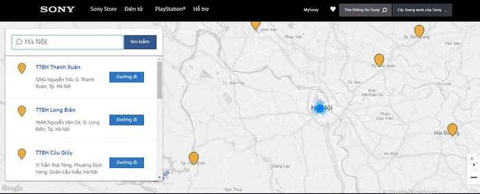 For example, if you live in Hanoi, just enter 'Hanoi' in the search box and click Search, then the list of nearby warranty centers will be fully displayed.