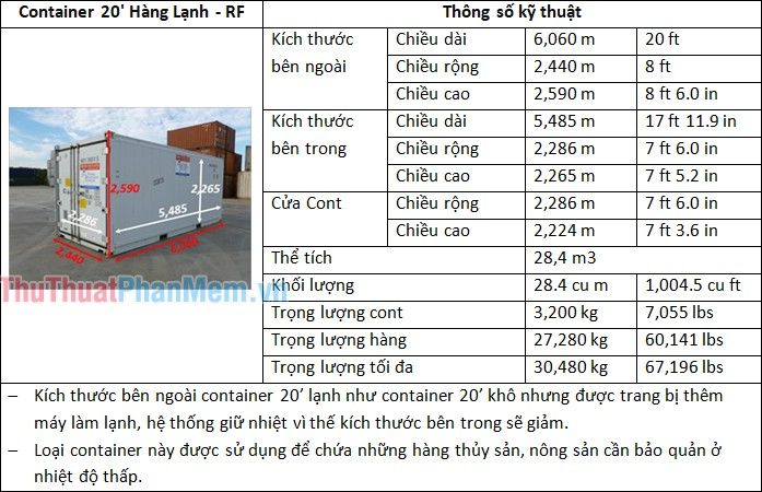 Standard 20 Feet Container Dimensions - Reefer (RF)