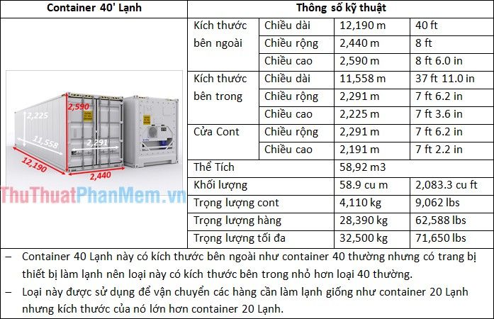 Here are the standard dimensions for each type of container: 20 feet, 40 feet, 45 feet. We hope you will have a clear understanding of the dimensions of each container type for the most suitable cargo packing.