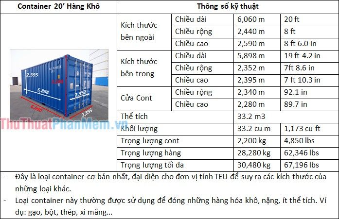 Standard 20 Feet Container Dimensions - Dry (20 ft)