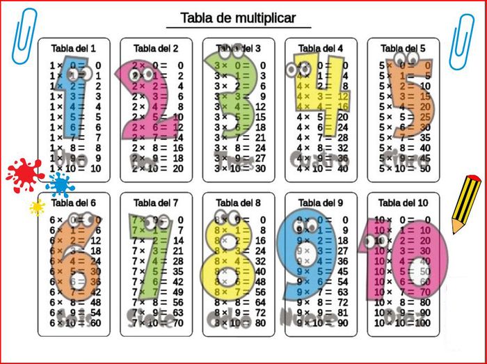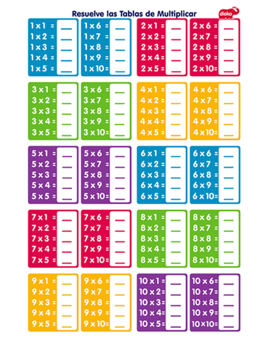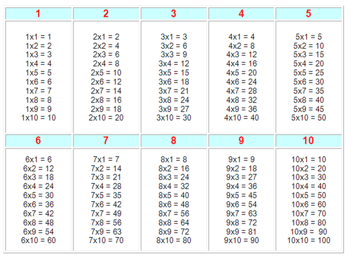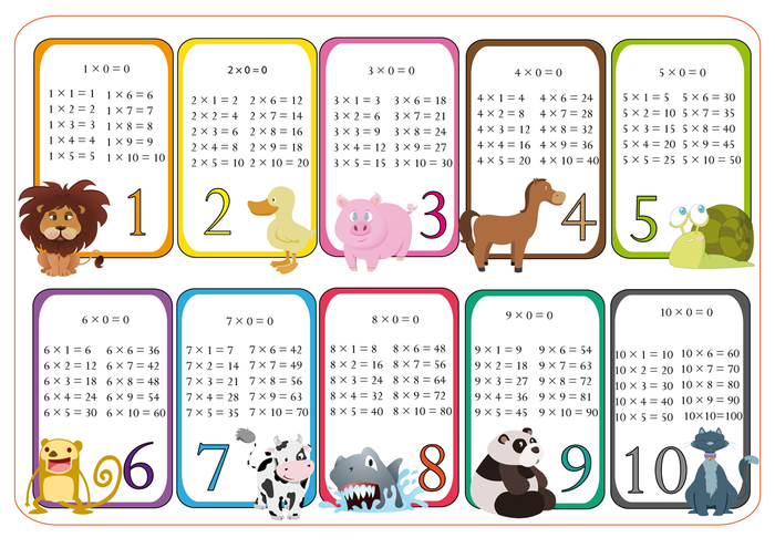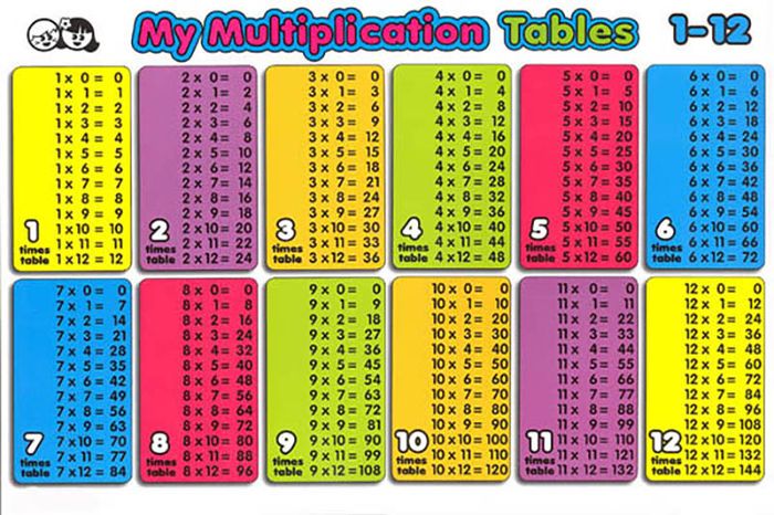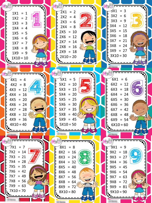 Download and stick some multiplication tables in your child's study corner to practice and memorize daily.