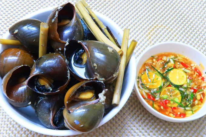 Above is the recipe for steamed lemongrass-stuffed snails and snail dipping sauce. Wish you all success with this dish!