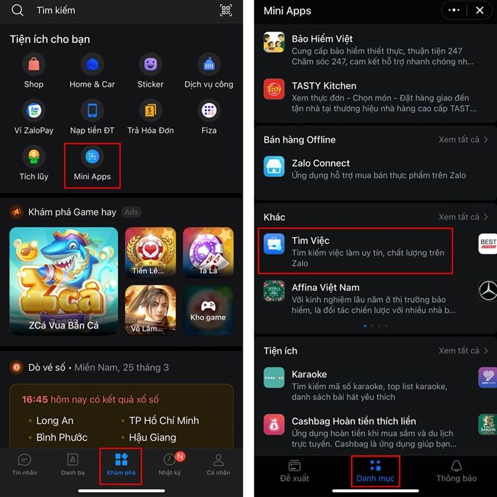 Step 1: Firstly, access the Zalo app > Navigate to Discover > Then select Mini Apps > Scroll through Categories > Swipe down and choose Find a job.