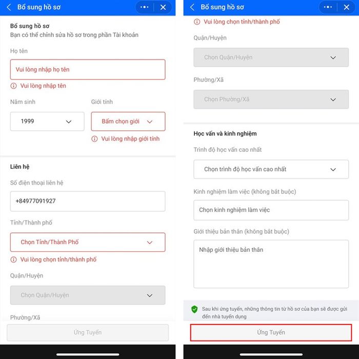Step 3: Next, you need to supplement your profile information thoroughly and click Apply to finish.