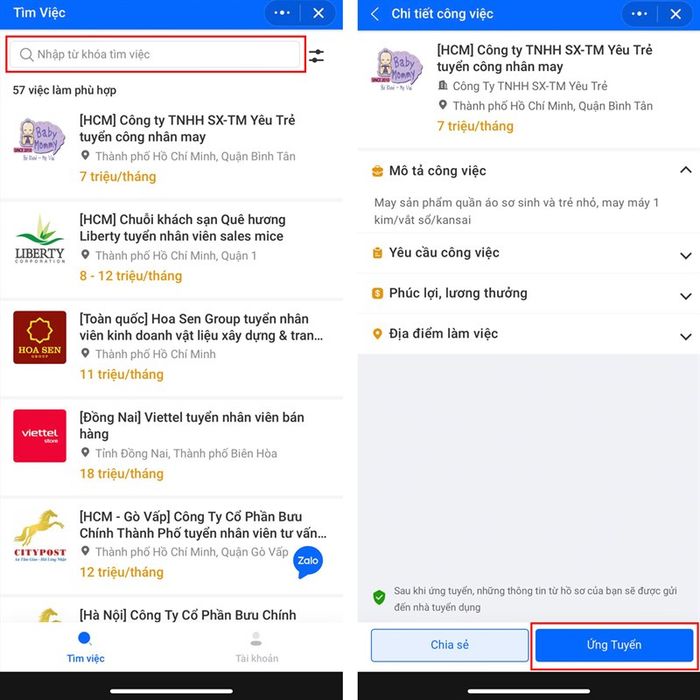 Guide to finding jobs on Zalo