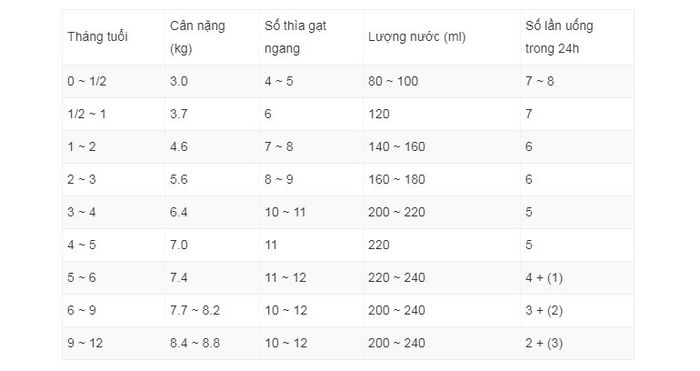 Depending on your baby's actual feeding schedule and number of feedings per day, you can easily prepare Glico formula milk No. 0 correctly according to the following ratios: