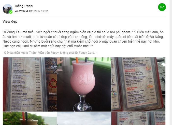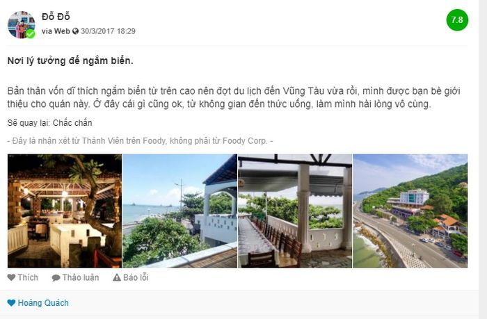 With numerous distinctive features, Ô Cấp Vũng Tàu consistently provides an interesting experience for customers. This is reflected in numerous reviews and comments from patrons. The majority express satisfaction and admiration for the venue's ambiance. Additionally, they convey surprise and delight with the refreshing and romantic sea-view. Here are some reviews compiled by Mytour Blog: