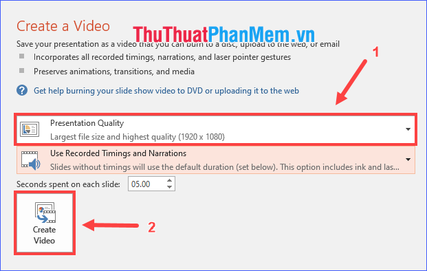 Select the video quality and click on Create Video to finalize the export.